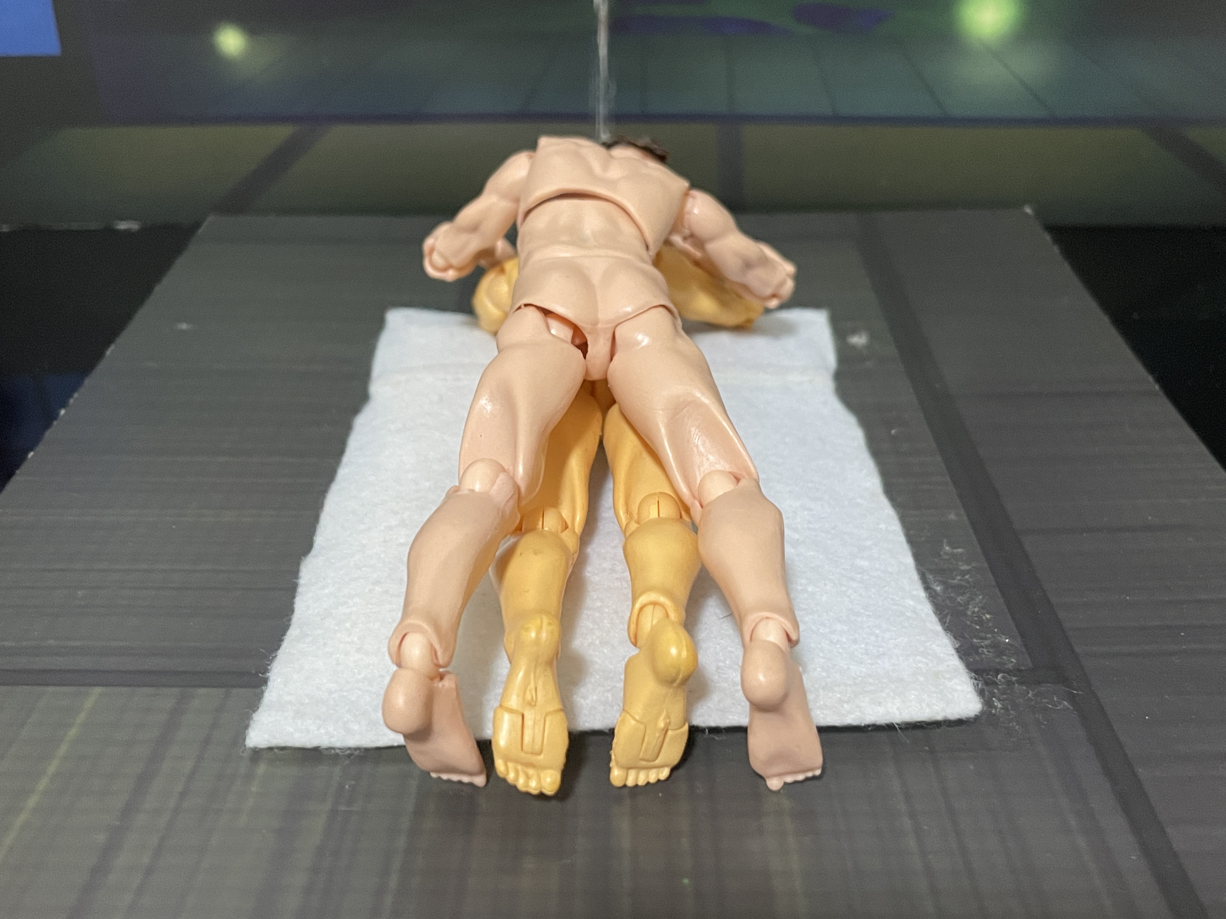 ウケはうつ伏せになって足をそろえ、手は頭の横あたりに出しておきましょう。