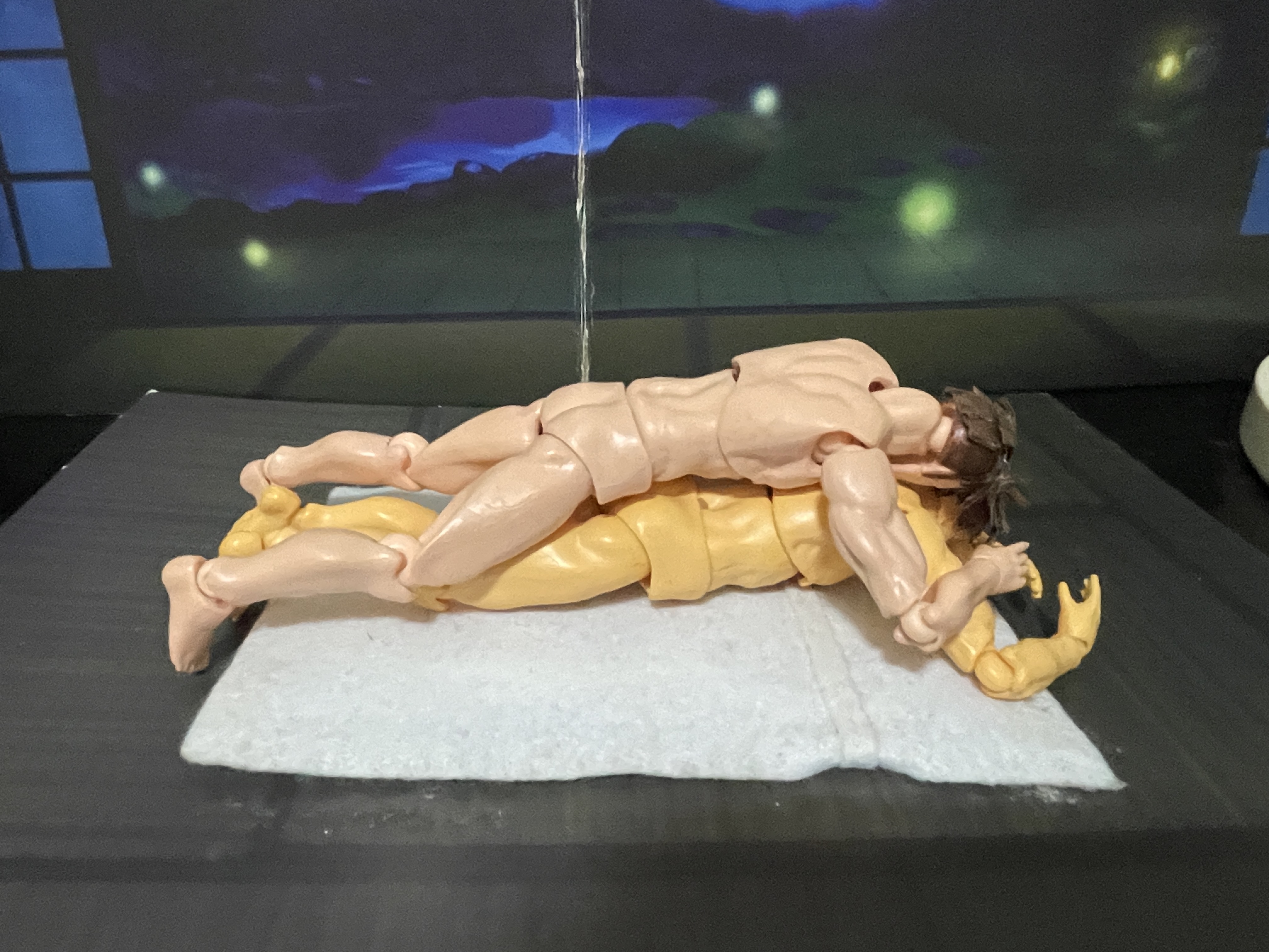 ウケの尻の肉が押されるさまを観ることができますが、真横だとキスシーンも顔が重なって隠れてしまうため調整が必要になります。