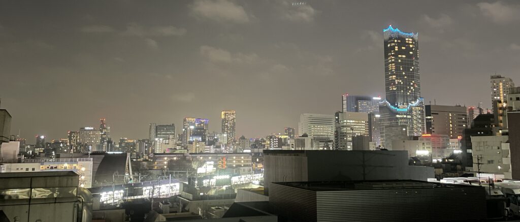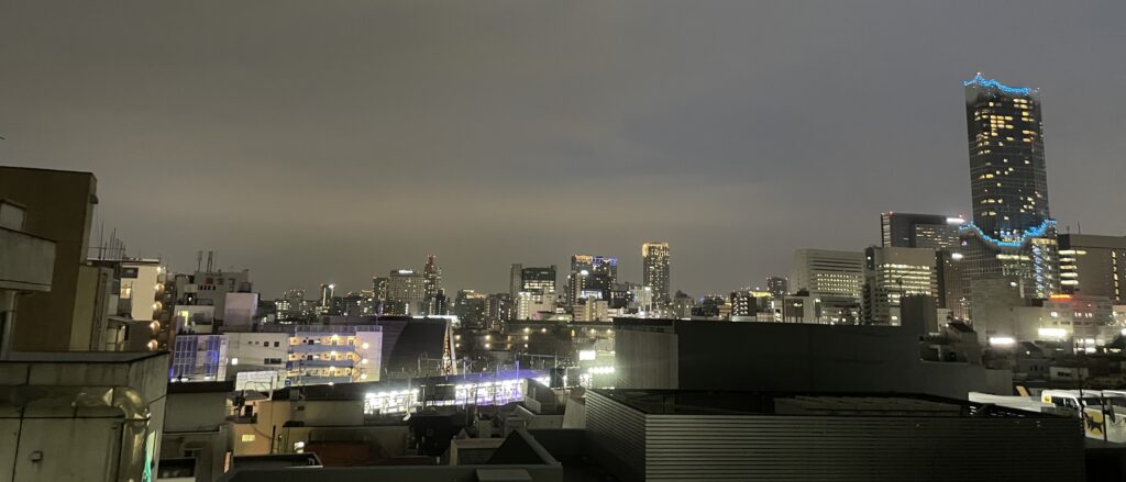暗いはずの外ですが18時のときよりも町の照明により、さらに明るくなったことでキレイな景色になっていました。