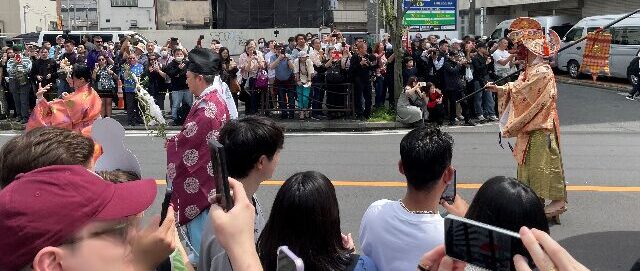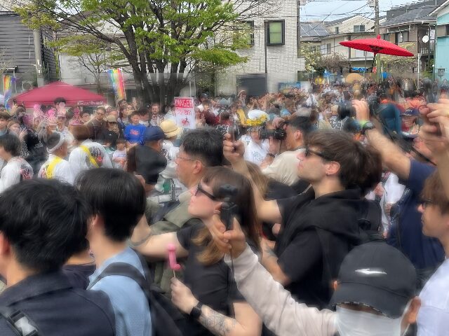 意外に歩道から気が昂った女性が掛け声をだしていたりもするので、男も女も女装も、さらには人種も関係ない世界の平和を凝縮したさまに感動すらおぼえます。