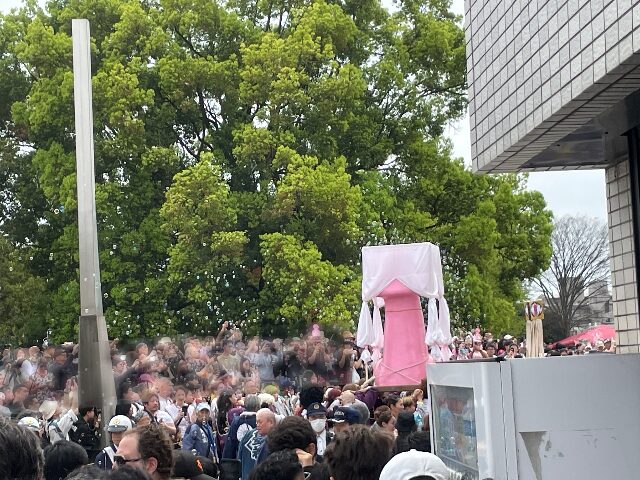 12時22分、やっと着いた公園の人だかりもすさまじく、まるで表象された男根たちは世界のアイドルかのよう!