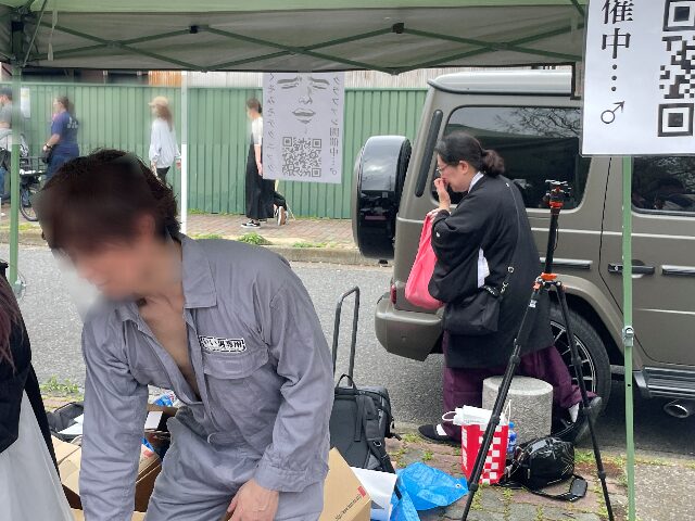 どうやら受付のお二人へねぎらいでしょうか…何かを渡しているところであり、参加のきっかけとなった二大広告である町田禰宜とくそみそがコラボしているなんて!※コラボしているわけではありません