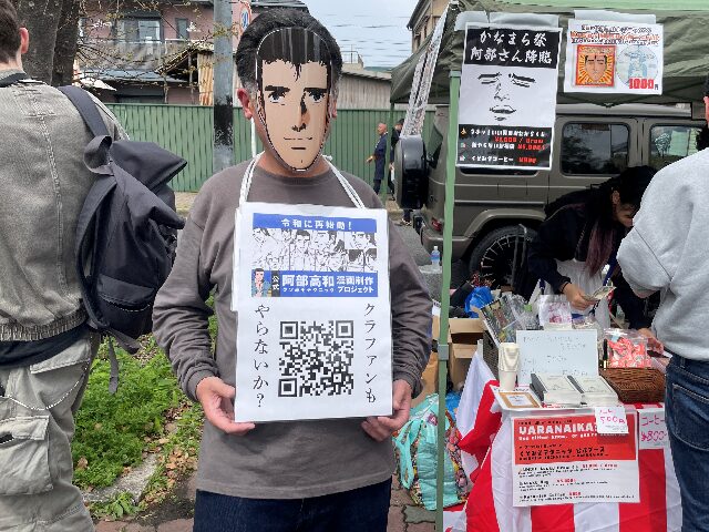 出店には3人おり、男女の受付とQRコードを携えた阿部さんのお面をする男性が…ずっといる感じだったので、もしかしてこの男性は原作者:山川純一氏の可能性がありますかね?微レ存