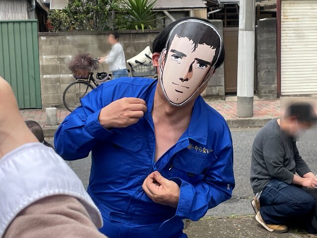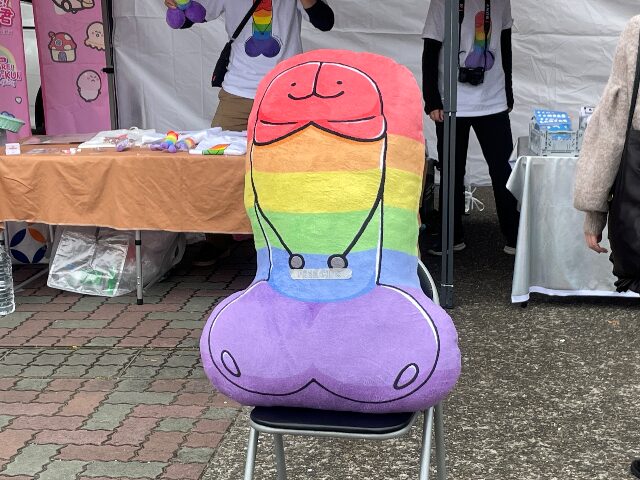 なかには女性が男根を模した風船を頭に着けていたり、クジで当たりを引いたのか阿部さんのお面をした男性と女性のカップル、エリザベスを運んでいた女装の方達もふつうに談笑しています。