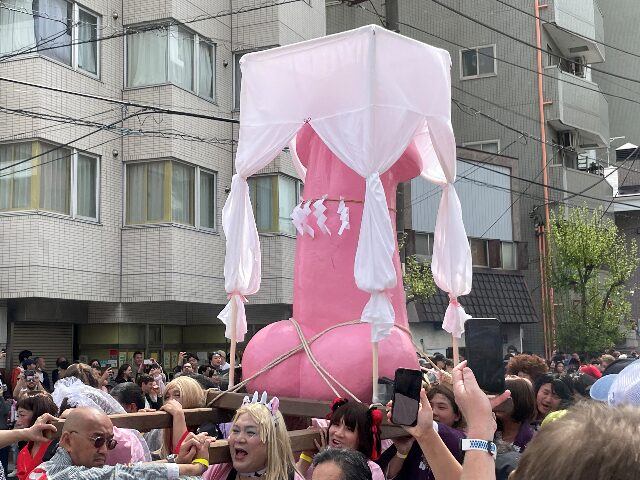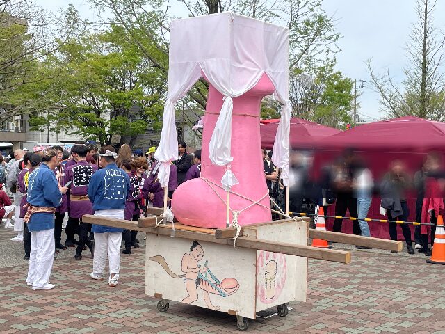 この神輿は基本的には女装をしている方が運ぶそうで、表象された性器を担ぐのが女装の方々というのがこのお祭りの最大のポイントといってもいいでしょう!