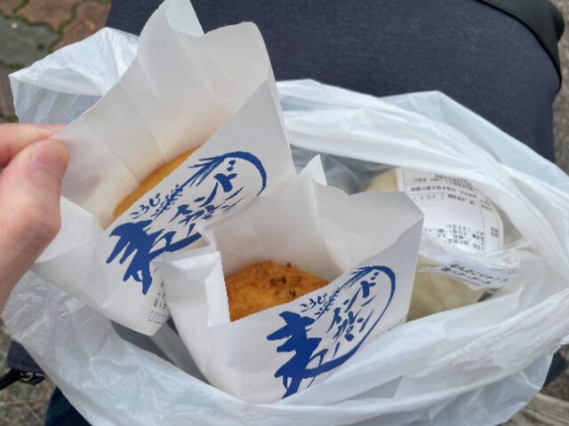 揚げたてのパンを公園のベンチに座ってゆっくりと堪能することに。
