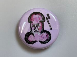 お礼として、人目には晒せない缶バッジをいただくことができ、いくつかあるなかの紫をチョイス!